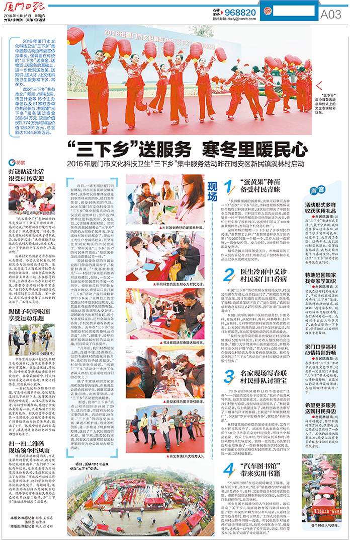 廈門(mén)日報對本次“三下鄉”活動(dòng)做了系列報道: