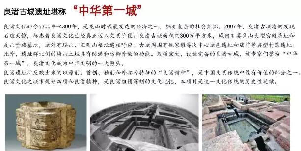 對于良渚文化的內容,對歷史考古學(xué)家意義重大,和平時(shí)的生活關(guān)系不是特別深,所以就不作過(guò)多的分享解釋了。根據杭州市整體規劃,杭州分為“東動(dòng) 西靜 南新 北秀 中興”這樣幾個(gè)大的組團,良渚屬于杭州整體規劃中“北秀”的核心組團。良渚項目距離市中心18公里,位于杭州的西北角。整個(gè)項目是約10000畝的土地,5000畝都是自然原生態(tài)的山林,5000畝是居住用地。其中住宅面積是兩百三十萬(wàn)平米,公共建設面積是五十萬(wàn)平米,旅游配套面積比重也非常的大,大概是七十萬(wàn)平米。