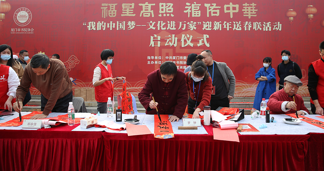 此次活動(dòng)是中共廈門(mén)市委文明辦指導下的社會(huì )公益文化活動(dòng),由廈門(mén)市書(shū)院協(xié)會(huì )與白鷺洲建設開(kāi)發(fā)公司聯(lián)合主辦,廈門(mén)中肯廣告公司策劃承辦。該活動(dòng)還將加入市委宣傳部組織的全市文化衛生科技三下鄉送春聯(lián)獻愛(ài)心活動(dòng)行列,為農民朋友寫(xiě)春聯(lián)送祝福。