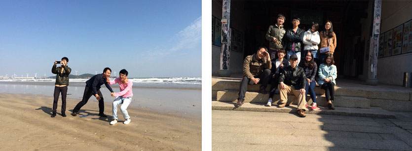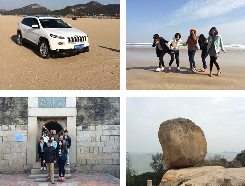風(fēng)動(dòng)石景區依山面海,十分壯觀(guān)。東山的標志風(fēng)動(dòng)石,歷經(jīng)臺風(fēng)、地震而巋然不動(dòng),讓人贊嘆。沿著(zhù)臺階拾級而上,來(lái)到了關(guān)帝廟,這里香火很旺,始建于明洪武二十二年(1389),每一塊石頭都有數百年的歷史了。關(guān)帝保佑了當地人們數百年,人們對其的信仰非常虔誠。離開(kāi)關(guān)帝廟,大家走在濱海木棧道上,觀(guān)瀾這美麗的山海風(fēng)光,紛紛用相機記錄下這些美景。游覽完風(fēng)動(dòng)石景區,大家便踏上了回程?;厝サ穆飞?,仍然會(huì )回味這些美麗的景色,這次旅行是一次讓人覺(jué)得不虛此行的旅程。